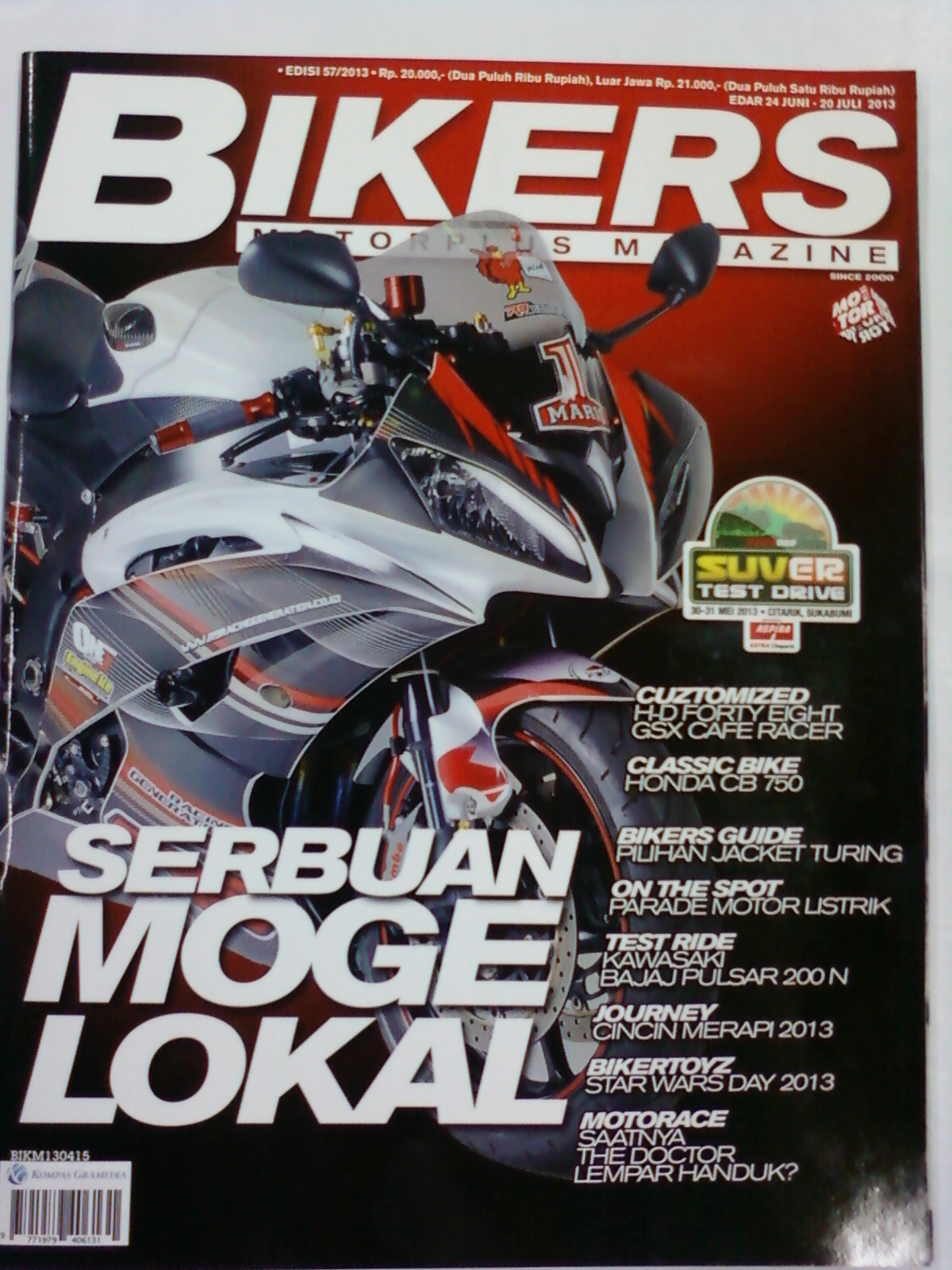 Dalam edisi kali ini mengulas tentang tipe moge baru apa saja yang bakal diluncurkan. Bukan hanya moge, deretan motor baru yang memanfaatkan moment Pekan Raya Jakarta alias Jakarta Fair 2013 juga dihadirkan di edisi kali ini. Mulai dari produk baru andalan Kawasaki dan Bajaj lewat Pulsar 200NS. Juga ada bebek baru Yamaha Force yang sudah mengusung teknologi injeksi. Lanjut membahas perjalanan ke Gunung Merapi lewat Cincin Merapi Journey yang merupakan gawean Majalah Bikers, Motor Plus, Majalha JIP dan Majalh Car & Tunig Guide (GTP). Di kavling Classic Bike, kali ini kedatangan tamu Honda CD 750cc, motor empat silinder pertama bikinan Honda ini sekarang memang lagi diburu kolektor. Apalagi bagi penyuka motor Jepang retro.