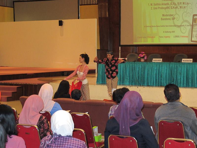 Currently, society and information technology products are two things that cannot be separated. The existing phenomenon shows that society is very dependent on information technology products. As a consequence, many activities carried out by the community are supported by information technology products. The development of information technology has brought society into the digital era as it is today. Information, science, movies and songs began to be presented in digital format. This is possible because information technology products make it possible to produce information, science, movies and songs in digital format. Related to information and science, the development of information technology causes information and science to be produced and distributed quickly. Information and knowledge produced in printed and digital formats can be produced and distributed more quickly, either by utilizing advances in remote printing technology, or by utilizing other technologies. These conditions make it easier for people to access information and have greater opportunities. The public is increasingly spoiled by conditions like this because it is easier and faster to access information. In this digital era, what is the role of libraries as institutions that act as information providers for users. Will the convenience offered by information technology products in searching for information and knowledge cause users to leave the library? Or on the contrary, the existence of information technology can be optimized to support the services provided by the library so far. This was explained in the event. National Seminar with the theme “Digital Era: Opportunities and Challenges for Library Development” held on Wednesday, June 5, 2013, at the Multipurpose Building of ISI Yogyakarta. The speakers in this seminar were M. Solihin Arianto, S.Ag., SIP, M.LIS (Lecturer in Library Science at UIN Sunan Kalijaga and Head of UIN Sunan Kalijaga Library) and Umi Proboyekti, S. Kom., M.LIS (Lecturer in Computer Science at UKDW Yogyakarta). The event was hosted by moderator Bandono, SIP. The event was enlivened by “welcome” dance entertainment from ISI Yogyakarta students and hosted by versatile MC Dra. Trisno Trisusilowati, M.Sn.