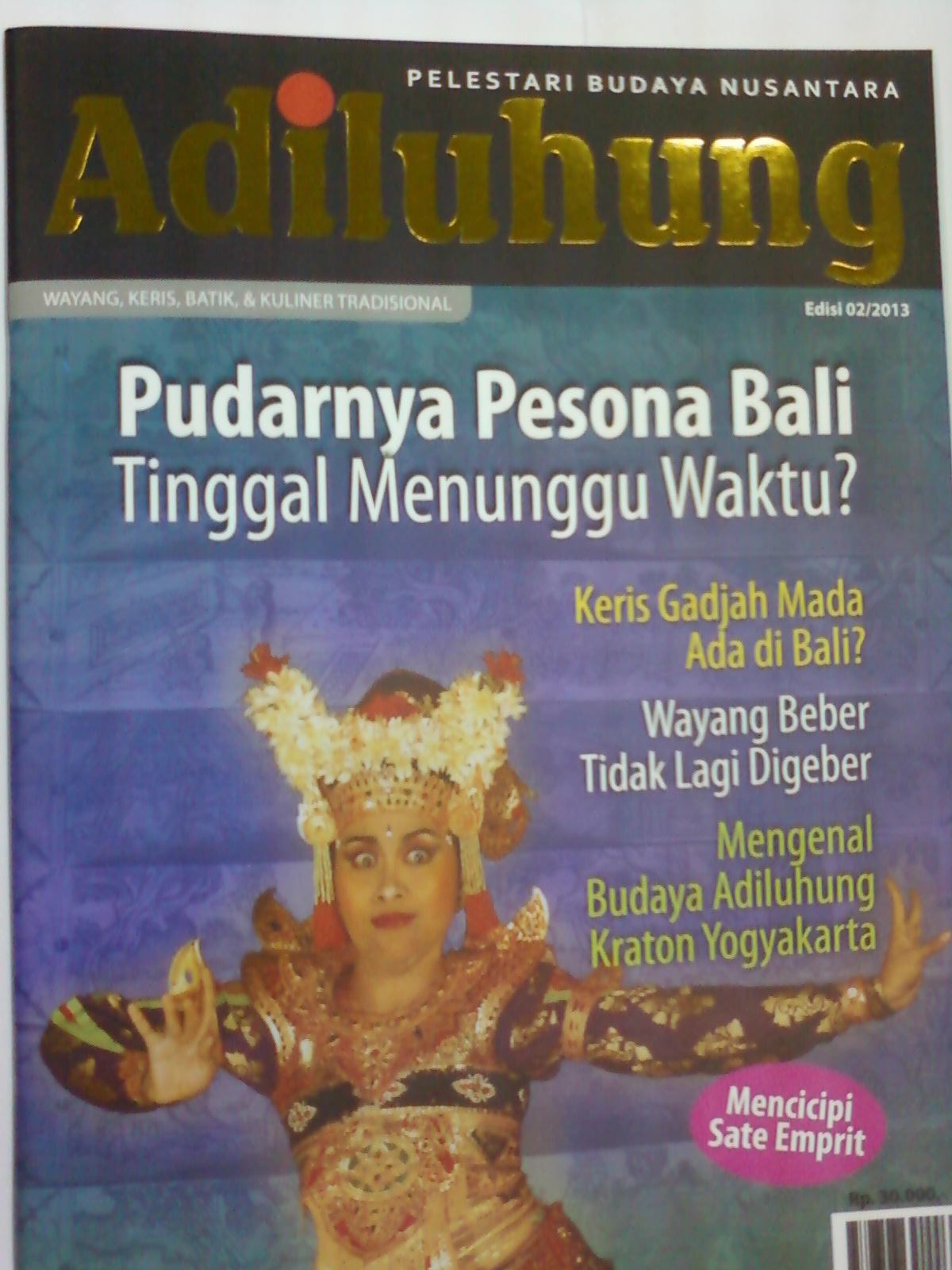 Sajian utama dalam edisi kali ini yaitu : Hal 4 – Benarkah Keris Gadjah Mada ada di Bali ; Hal 8 – Mengolah Berkah Alam, Menjelajah Khazanah Rupa ; Hal 12 Mengulas tentang pudarnya pesona Bali ; Hal 14 – Nilai Luhur vs Komersialisasi Kebudayaan Bali ; Hal 16 – Mengenal Budaya Bali di “Museum Bali” ; Hal 22 – Mistis dan Magis Keris Koleksi Museum Neka ; Selain artikel – artikel tersebut masih banyak lagi sajian-sajian menarik lainnya di dalam edisi kali ini.