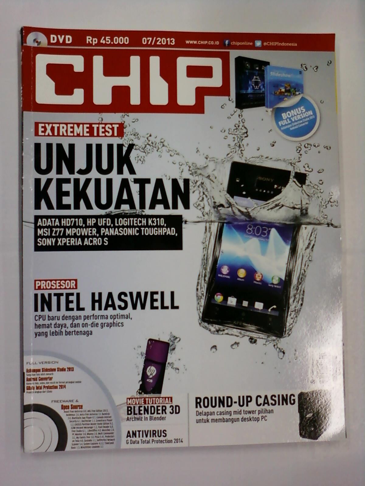 Edisi kali ini menyajikan artikel Extreme Test : Unjuk Kekuatan. Kali ini CHIP tidak hanya menguji perangkat penyimpanan data saja, tetapi juga motherboard, smartphone, keyboard dan tablet. Nikmati sajian artikelnya di halaman 40. Di dalam rubrik tren terdapat liputan ASUS memperkenalkan jajaran motherboard terbaru untuk Intel Haswell. Sedangkan di rubrik teknologi membahas tentang mempersiapkan dan membangun home network yang ideal. Dan dihadirkan pula tips hemat listrik yang ada di hal. 136.