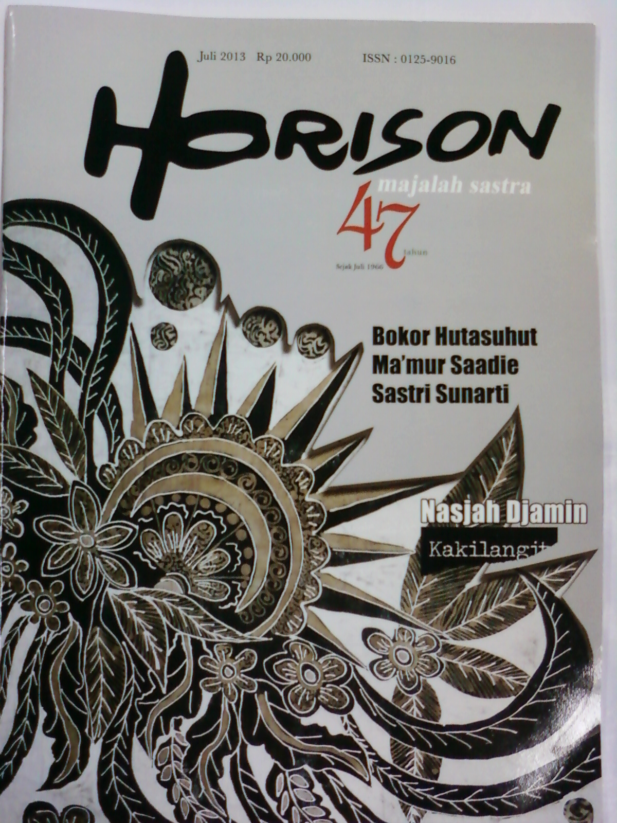 Sampul depan edisi kali ini menampilkan motif kain batik Madura, karya Tumidzi Jaka (Crooping). Dalam Catatan Kebudayaan ada artikel berjudul 47 Tahun Horison, oleh Jamal D. Rahman. Cerita pendek kali ini menampilkan judul “ Golok” yang dikarang oleh Bokor Hutasuhut. Untuk puisi kali ini menampilkan puisi-puisi karya Ma’mur Saadie. Dalam rubrik kritik ada Sastri Sunarti dengan tulisan berjudul “ Krisis Identitas dalam Novel Orang-orang Blanti karya Wisran Hadi.