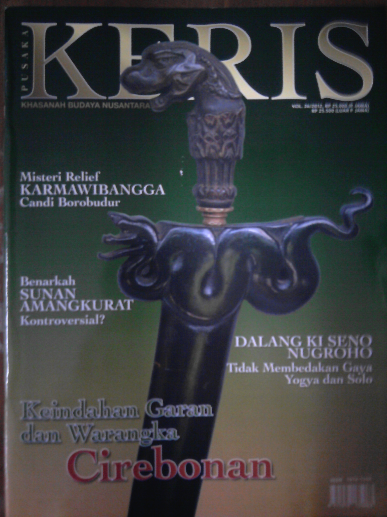 Edisi kali ini menampilkan sajian utama tentang garan (hulu keris, deder) Cirebonan. Dibalik perubahan bentuk garan tersimpan beragam cerita tentang serentang panjang sejarah perkerisan di wilayah pesisir utara Pulau Jawa yang sarat dengan budaya dan tradisi keratonan ini.  Berbagai bentuk garan yang dikenal di Cirebon memberi inspirasi seniman keris untuk mengkresikan berbagai pemikiran, simbol, dan keindahan didalamnya. Rubrik sosok menampilkan Ki Seno Nugroho (hal.30). Rubrik cagar mengupas tentang misteri relief Karmawibangga Candi Borobudur (hal. 54) dan artikel-artikel tentang seni budaya nusantara lain yang dapat dinikmati di edisi ini.