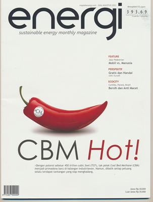 Majalah energi bulan ini memuat tentang Coal Bed methane (CBM) yang menjadi primadona baru di Indonesia, dalam rubrik feature ada “Mobil vs Manusia” dan ada Jaime Lerner yang berhasil mengubah kota Curitiba, Brazil menjadi kota hijau terkemuka di dunia.
