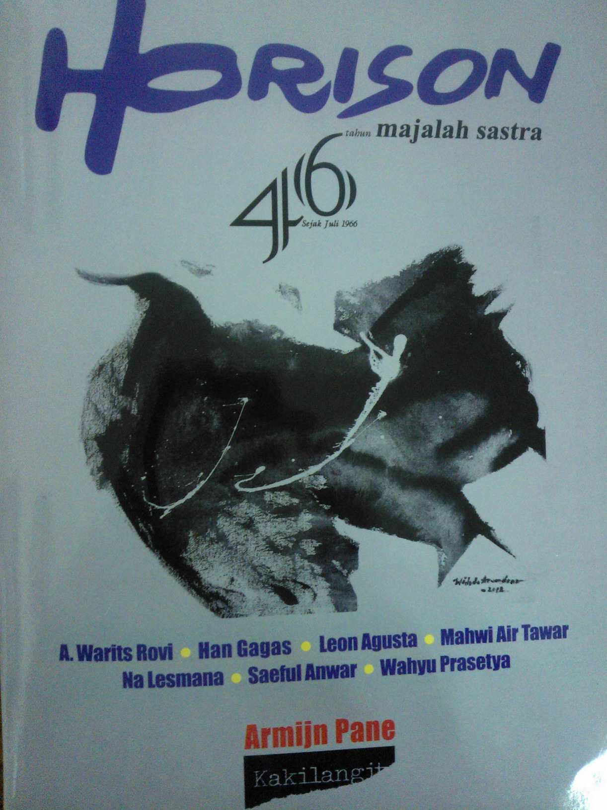 Edisi ini memuat 3 puisi karya Wahyu Prasetyo. 3 puisi karya Mahwi Air Tawar, 7 puisi karya A. Warits Rovi dan 2 cerpen yang masing-masing judulnya adalah Pembunuhan Wirobugel yang ditulis oleh Han Gagas dan Identitas yang ditulis oleh Na Lesmana. Rubrik esai mengulas tentang terjemahan karya sastra. Suplemen Kakilangit mengulas sastrawan Armijn Pane sebagai pembaharu sastra.
