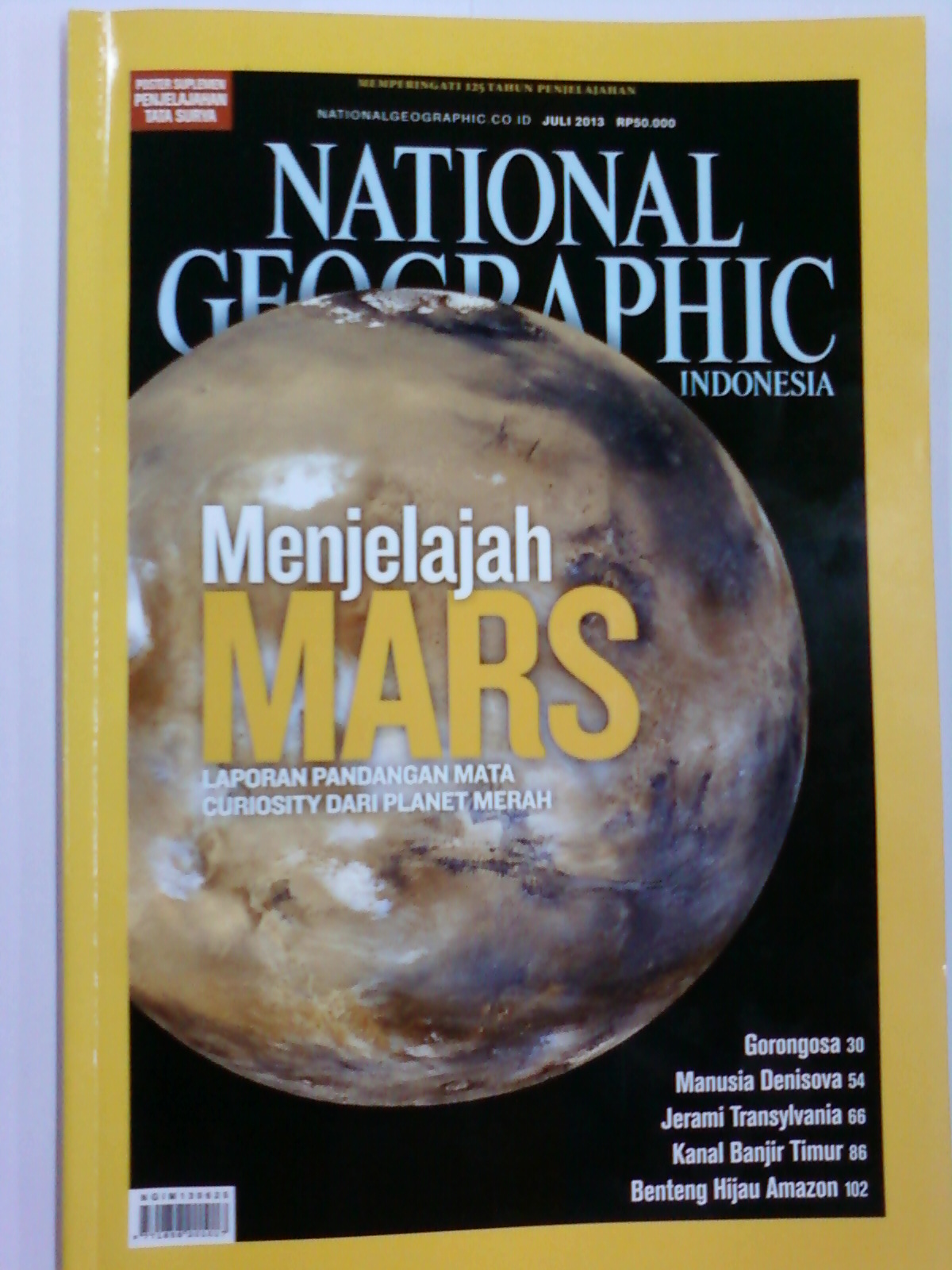 Edisi kali ini mengulas tentang Menjelah Mars, laporan pandangan mata oleh Curiosity dari Planet Merah. Ditenagai oleh plutonium, penjelajah NASA selebar 2,7 meter dan seberat satu ton ini menempuh jarak sekitar seratus meter per hari, melintasi bebatuan besar  dengan enam roda aluminium. Empat kamera mengawasi medan berbahaya di depan. Curoisity membuat foto panorama kawah Gale ini dengan kamera yang bertengger dua meter di atas tanah. Di kejauhan terdapat Gunung Sharp setinggi lima kilometer, yang dituju oleh penjelajah ini. Selain sajian tersebut diatas masih banyak artikel menarik yang menanti untuk dibaca.