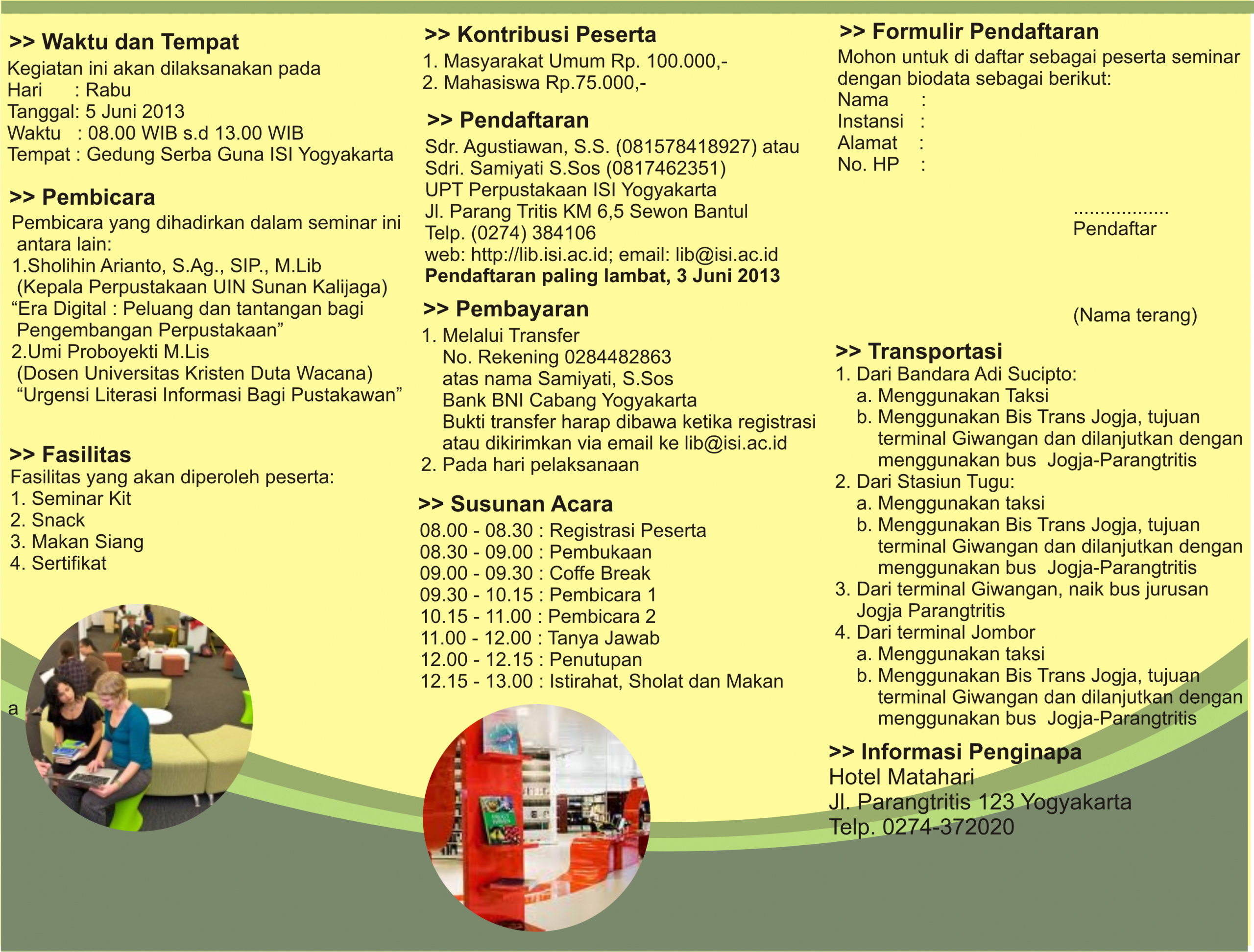 Tempat                          : Gedung Serba Guna ISI Yogyakarta
